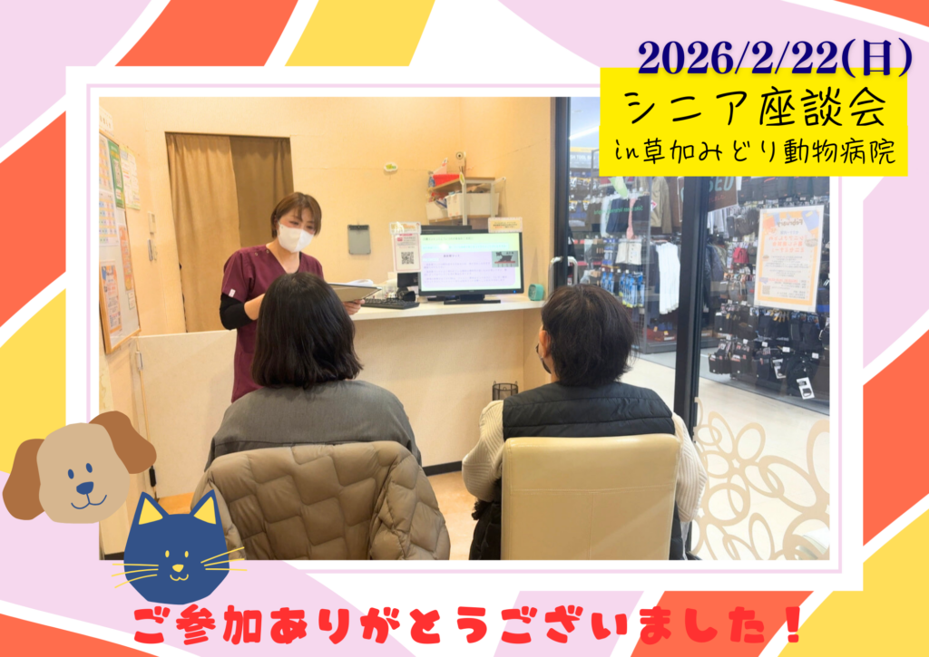 2月22日(日)、草加みどり動物病院にて、わんちゃんを飼っているご家族様を対象とした「シニア座談会」を開催いたしました。